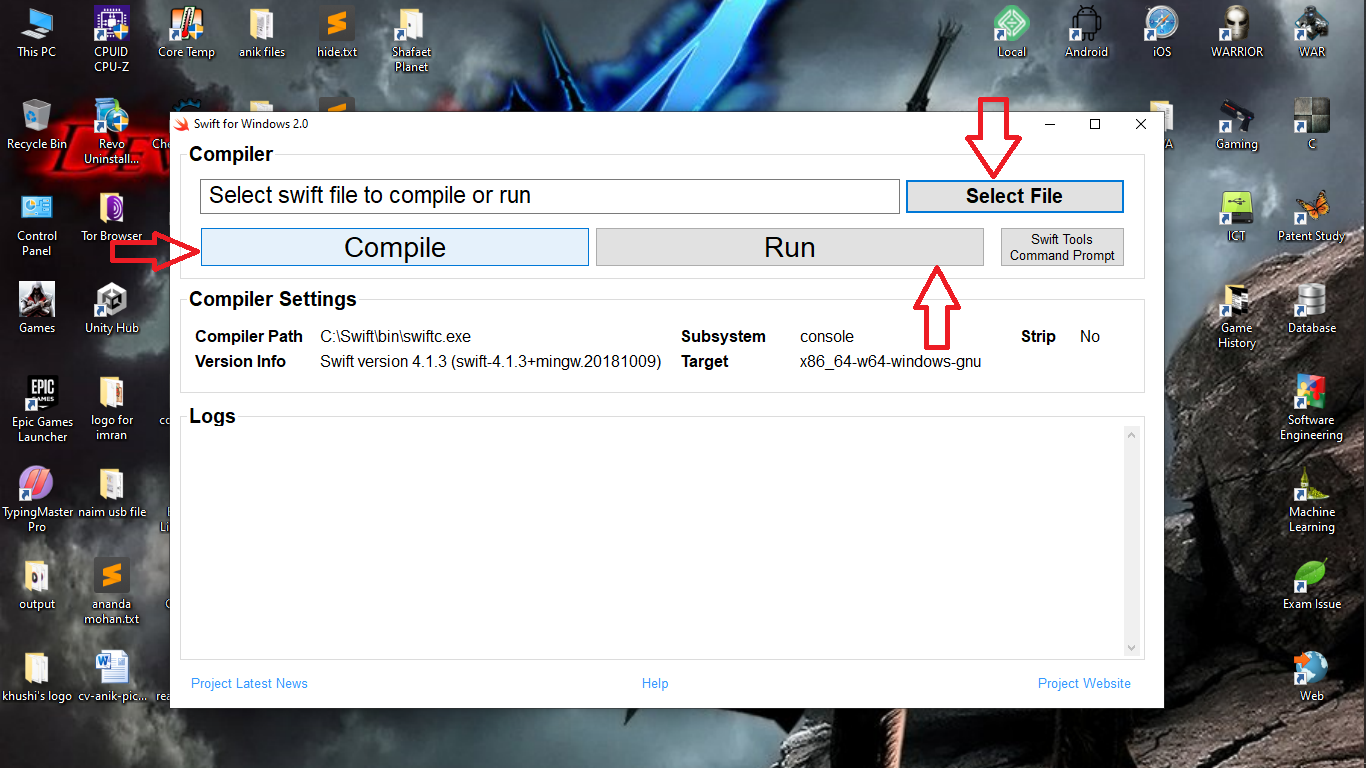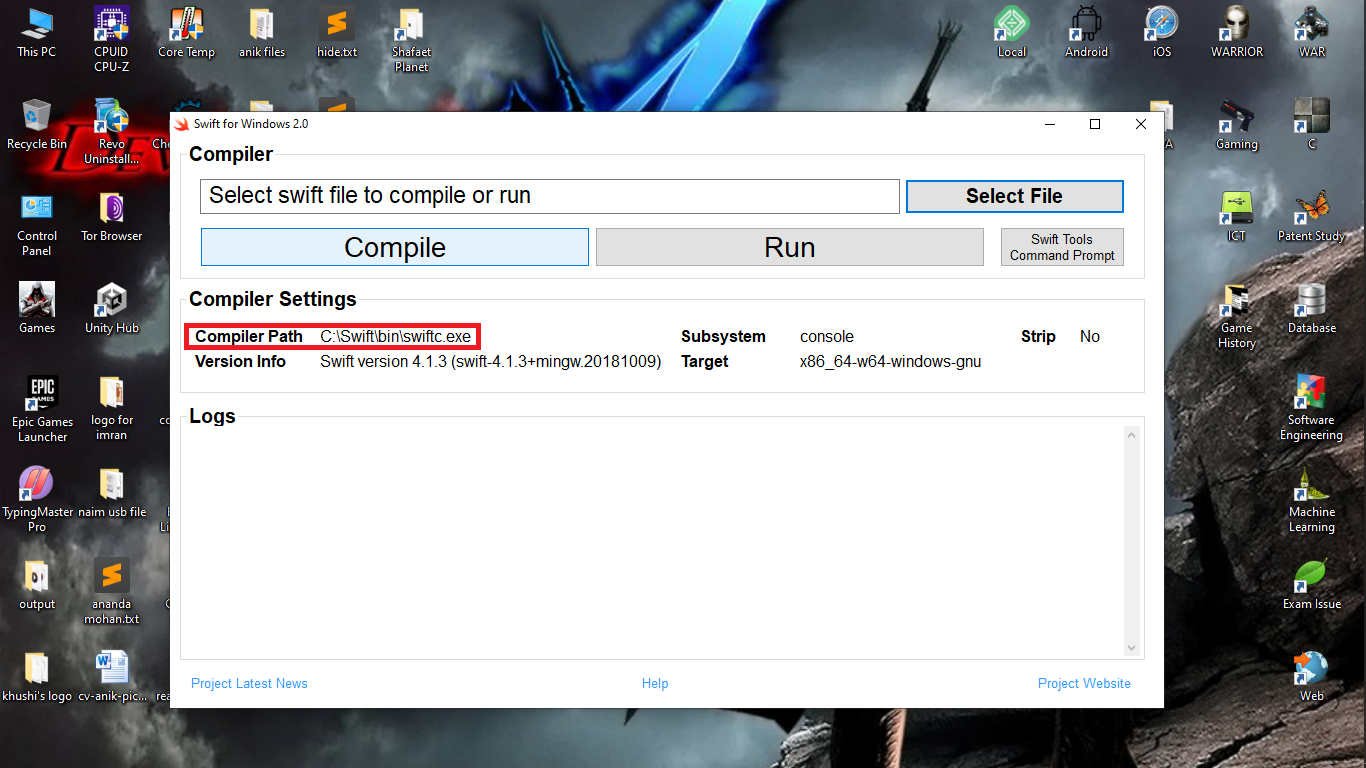Copy the compiler path from the Swift for Windows 2.0 software window (If you can’t copy, navigate to the shown path, and copy it from there).